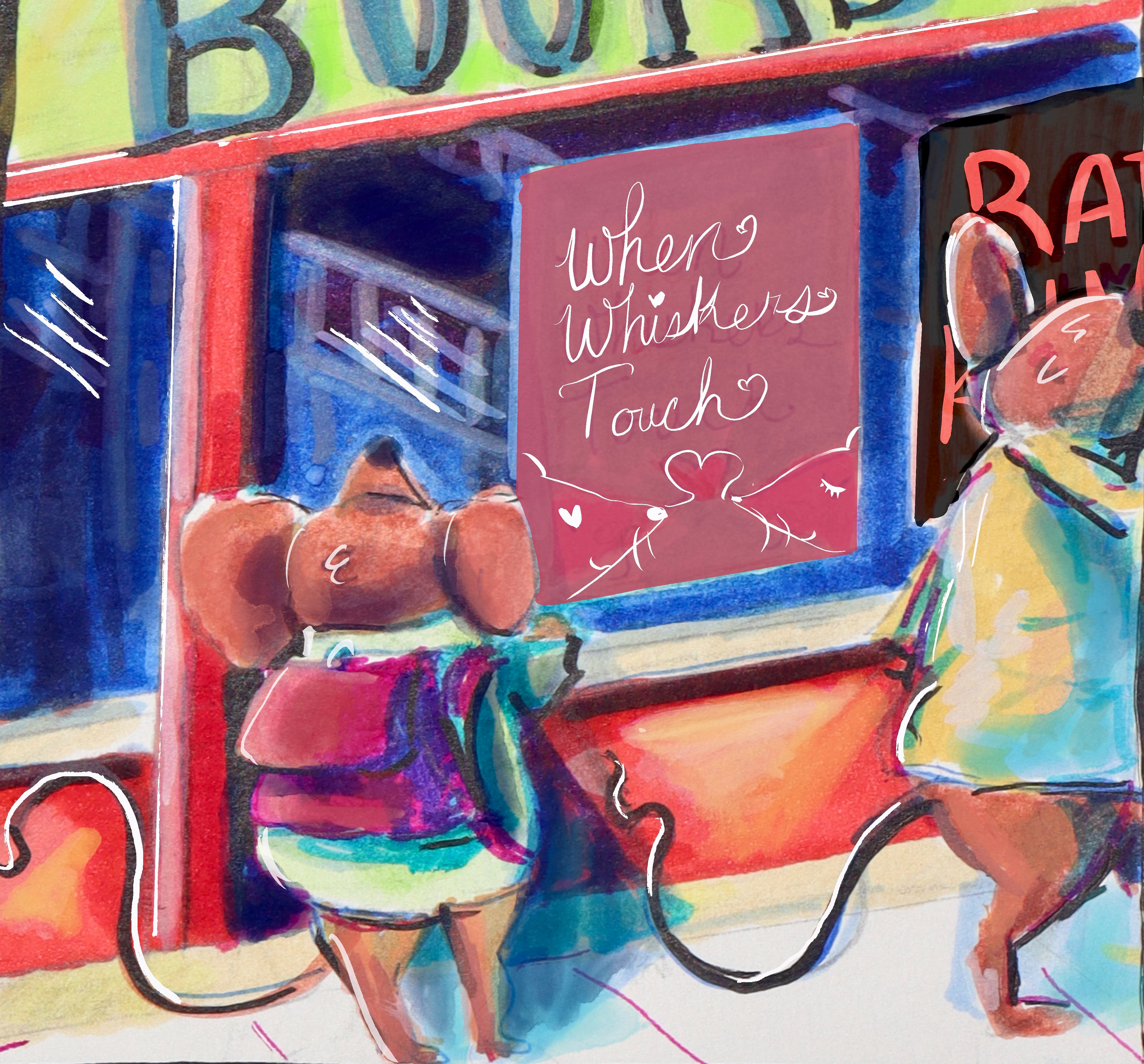 Bookstore Mouse Illustration Marker and Digital